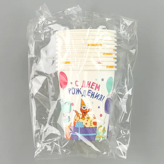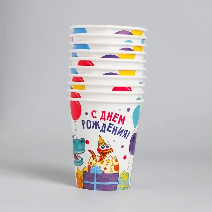 Одноразовая посуда: стакан бумажный «Шары», 250 мл,набор 6 шт