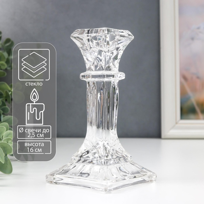 Подсвечник стекло на 1 свечу "Колонна прямоугольная" прозрачный 16х8,6х8,6 см