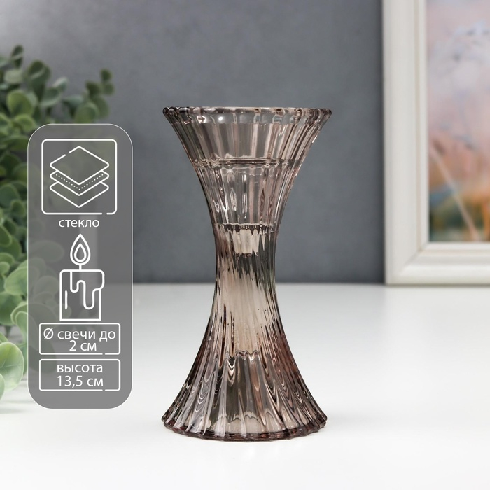 Подсвечник стекло на 1 свечу "Виток" серый прозрачный 13,5х7х7 см