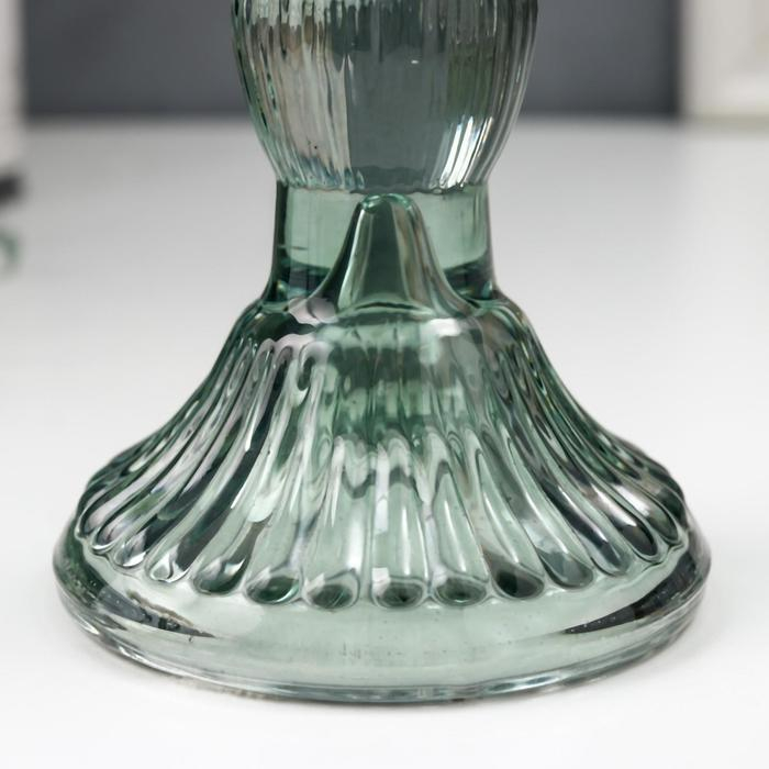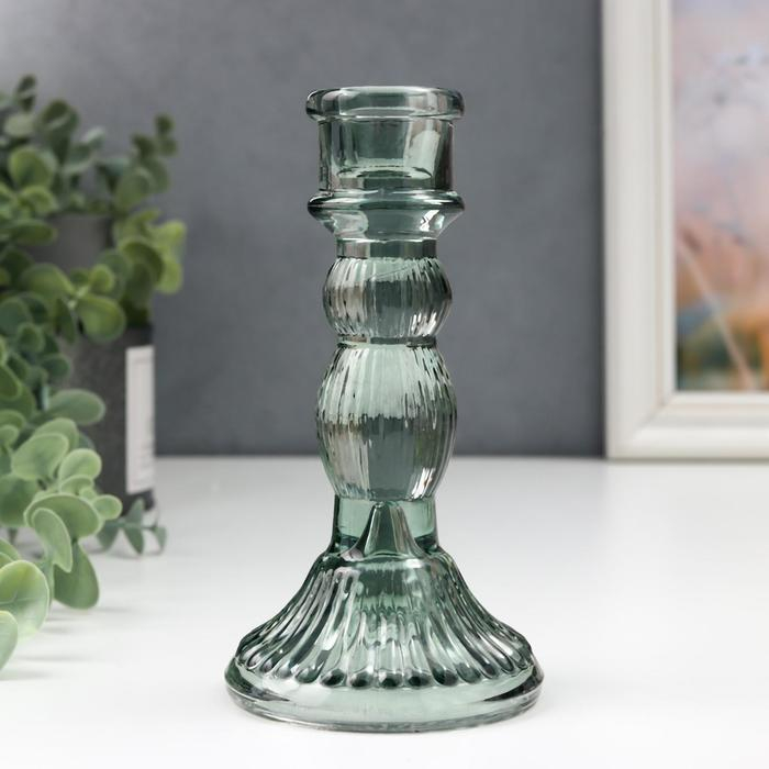 Подсвечник стекло на 1 свечу "Колонна с шарами" синий-зелёный прозрачный 15,5х8,5х8,5 см