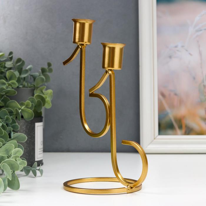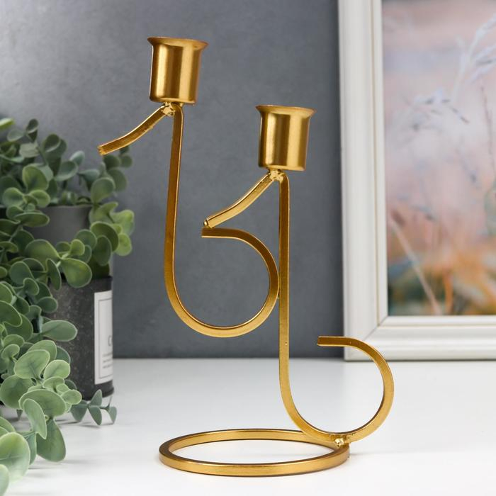 Подсвечник металл на 2 свечи "Ноты" золото 20х9х12.5 см