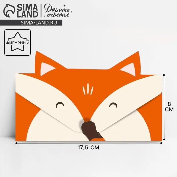 Конверт для денег фигурный «Лисёнок», 17.5 х 8 см