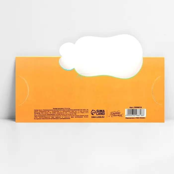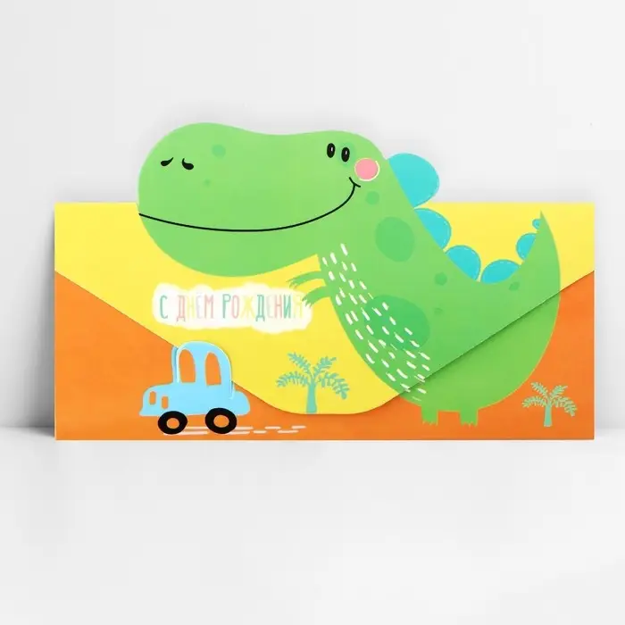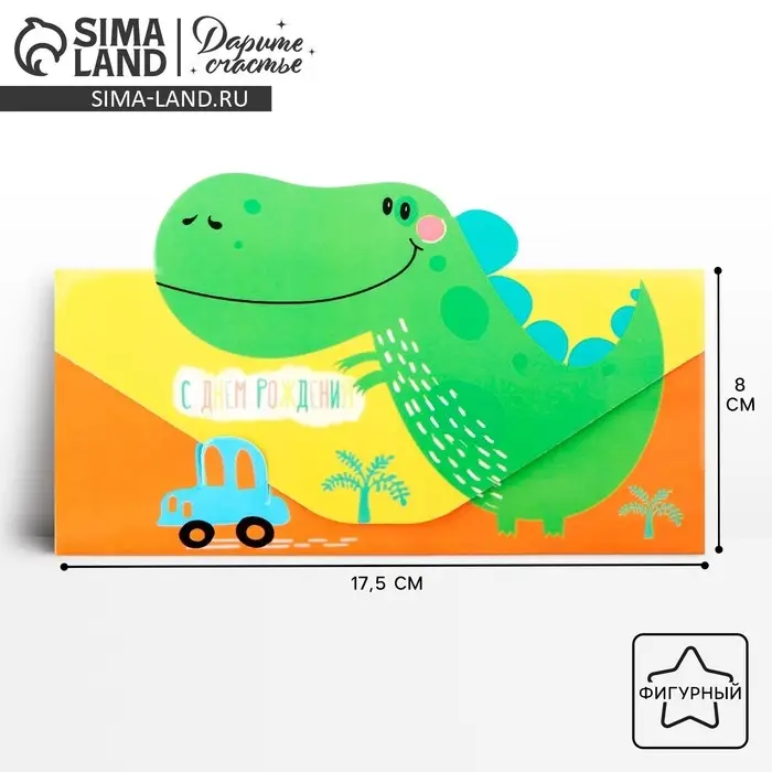 Конверт для денег фигурный «С днём Рождения», динозавр, 17.5 х 8 см