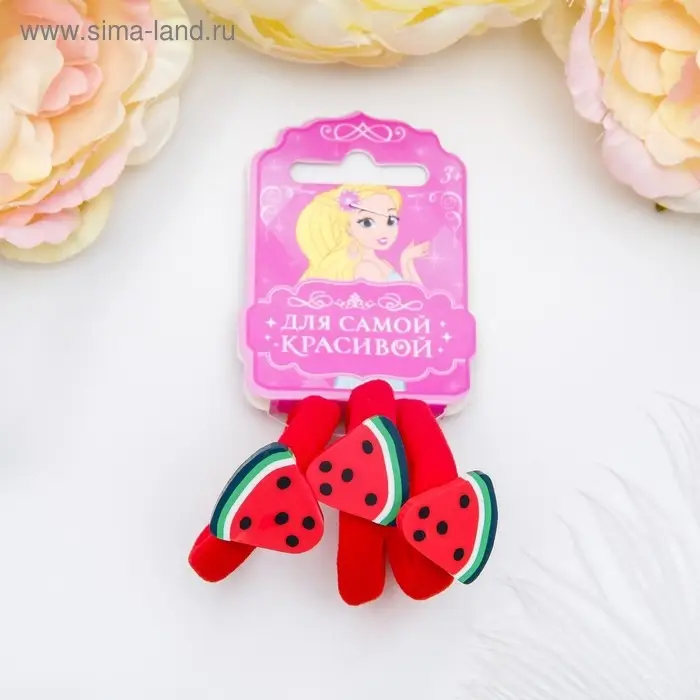 Резинка для волос "Фруктовый взрыв" (набор 3 шт) арбузик, 4,5 см, красный