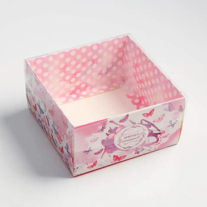 Коробка для кондитерских изделий с PVC крышкой «Приятных моментов», 11.5 х 11.5 х 6 см