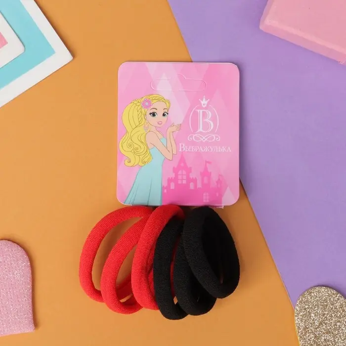 Резинка для волос "Махрушка" (набор 6 шт) 3,5 см, чёрный, красный