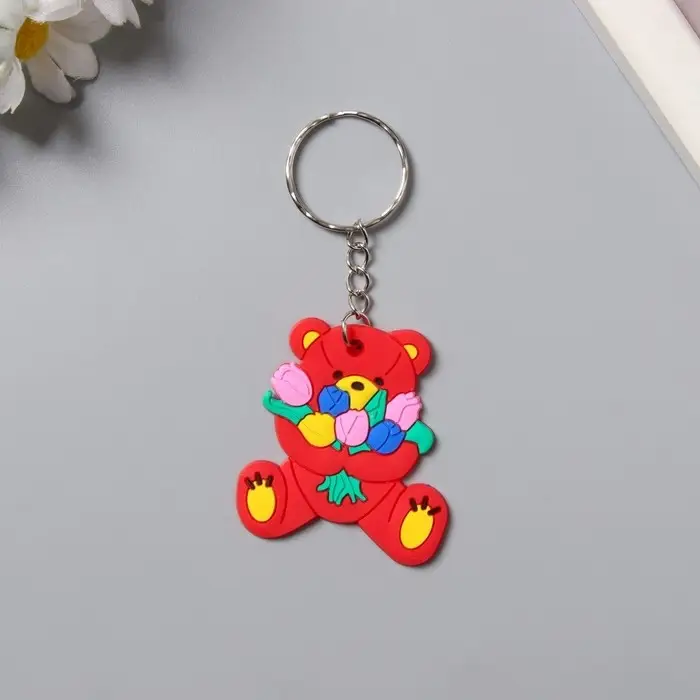 Брелок резина "Медвежонок с тюльпанами" 4,6х4,2 см