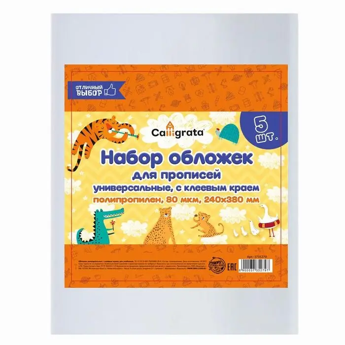 Набор обложек ПП 5 штук, 240 х 380 мм, 80 мкм, для прописей, с клеевым краем, универсальные