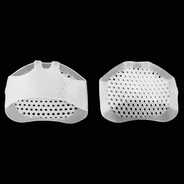 Благодаря полустелькам стопа находится в естественном положении, нагрузка распределяется равномерно, а нога не скользит даже в обуви на высоком каблуке. Манжет помогает удерживать мышцы в анатомическом положении, а также предотвращает появление шишек на больших пальцах ног и образование натоптышей, которые характерны для поперечного плоскостопия.