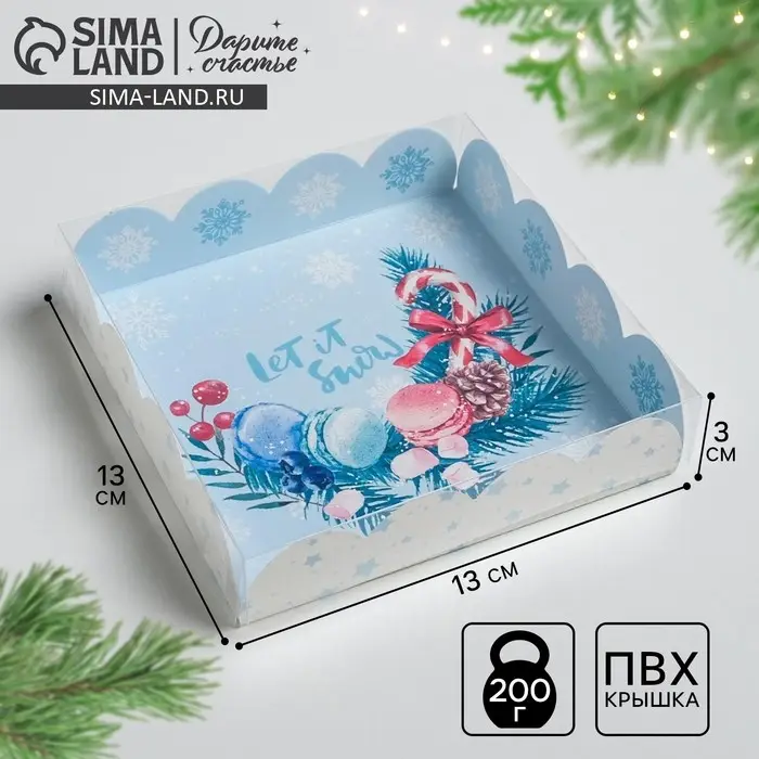 Коробка для кондитерских изделий с пластиковой крышкой «Морозное утро», 13 х 13 х 3 см