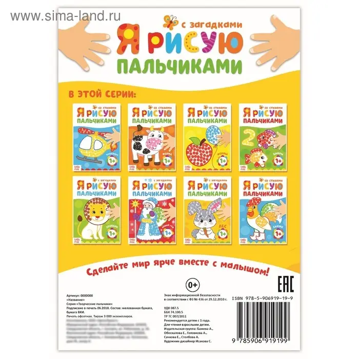 Книга «Рисуем пальчиками» имеет удобный формат для малыша, дополнена красочными картинками и интересными заданиями.