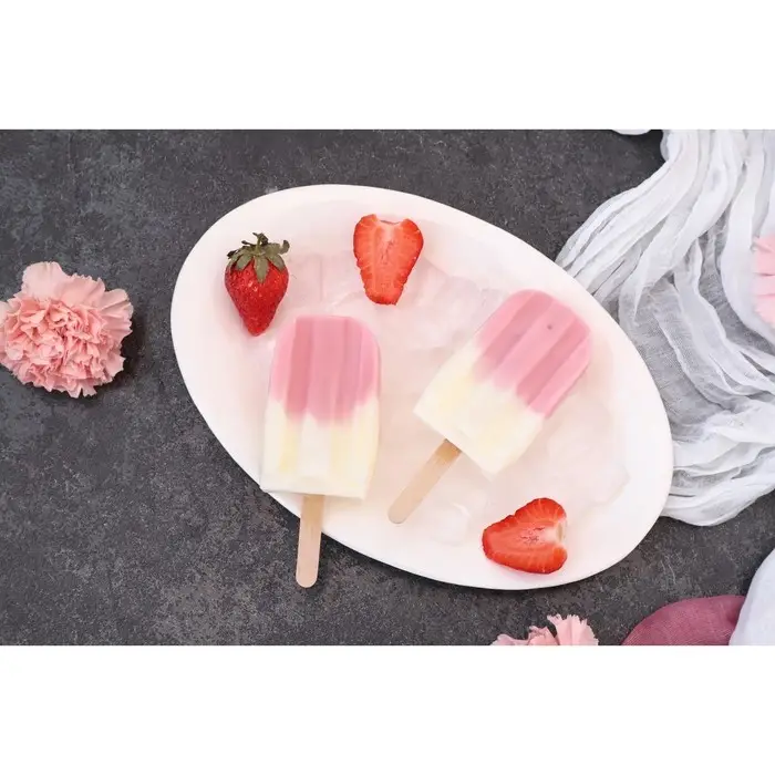 Форма для мороженого «Клубника со сливками», силикон, 19,5×11,5 см, 4 ячейки (6,7×3,7 см), белая