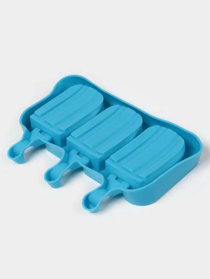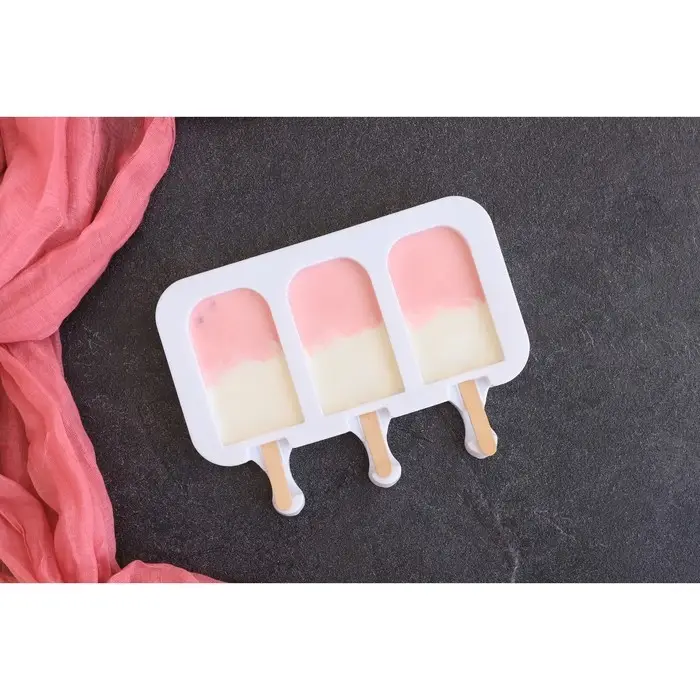 Форма для мороженого «Эскимо макси», силикон, 19.5×14.5×2.5 см, 3 ячейки (8.2×4.6 см), МИКС