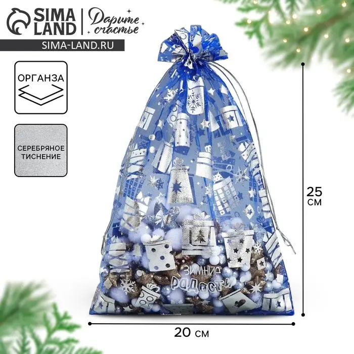 Мешочек подарочный органза «Зимние радости», 20 х 30 см +/- 1.5 см