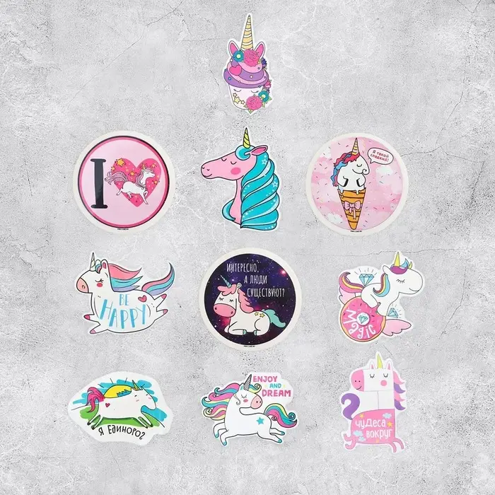 Наклейки-стикеры «Единорожки», 7×7 см, набор 10 шт.