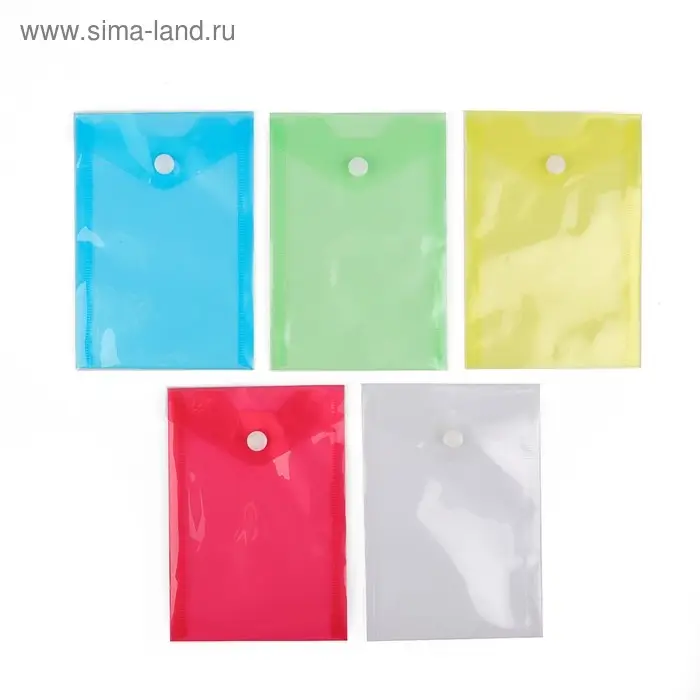 Папка-конверт на кнопке, А6, 180 мкм, вертикальная, тонированная, МИКС