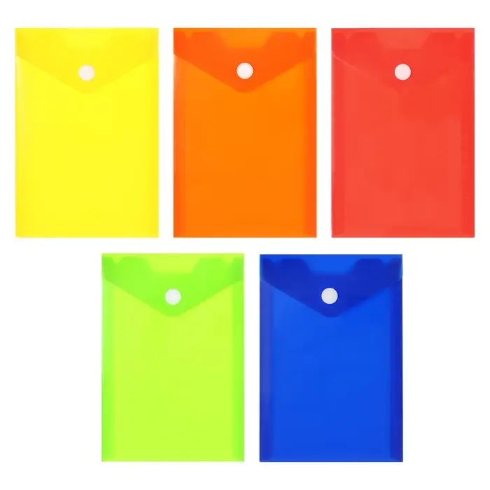 Набор папок-конвертов на кнопке 10 штук, А4, 180 мкм, Calligrata Office, полупрозрачные, микс