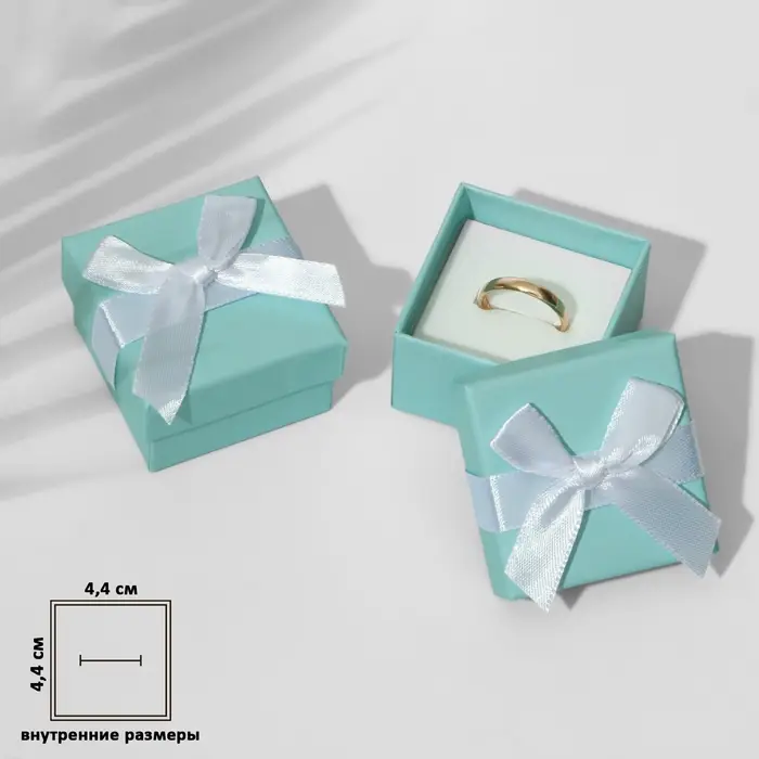 Коробочка подарочная под кольцо/серьги «Тиффани» 5×5 (размер полезной части 4.4×4.4 см), бирюзовая, вставка белая