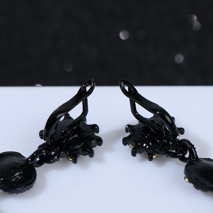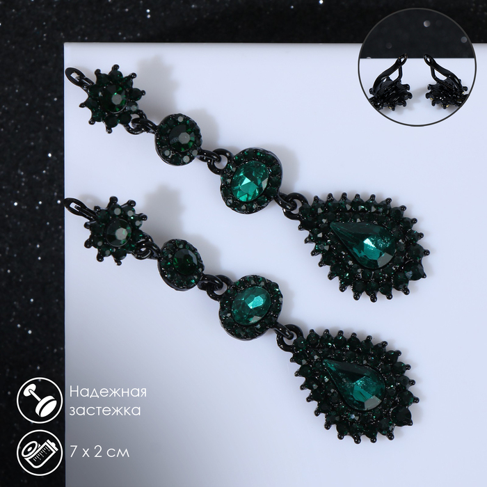 Серьги висячие со стразами «Вечерние» мадам, цвет изумрудный в чёрном металле, 7 см
