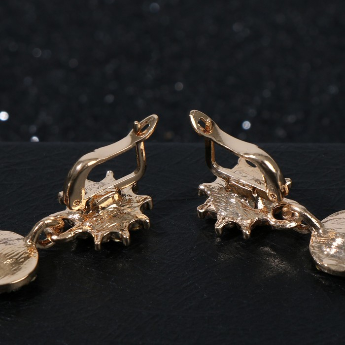 Серьги висячие со стразами «Вечерние» мадам, цвет бело-синий в золоте, 7 см