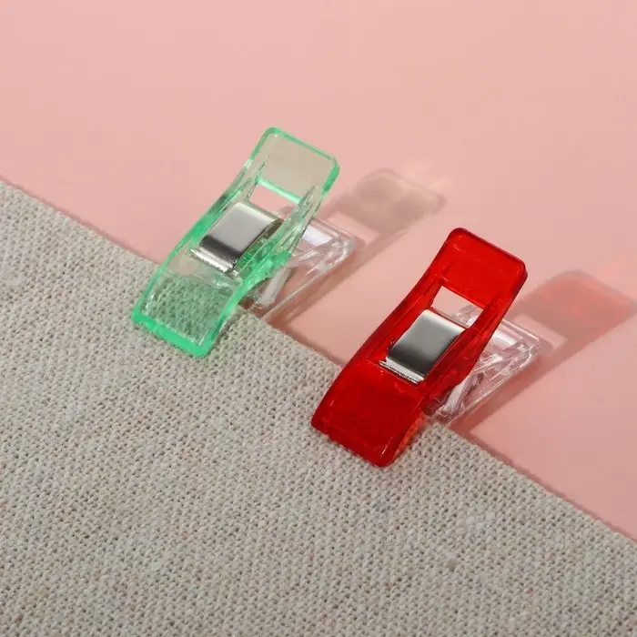 Чтобы ткань не мялась и не собиралась при крое, используйте специальные зажимы. Они надёжно зафиксируют материал, не повреждая его, и существенно облегчат работу.