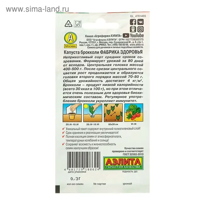Семена Капуста брокколи "Фабрика здоровья", 0,3 г
