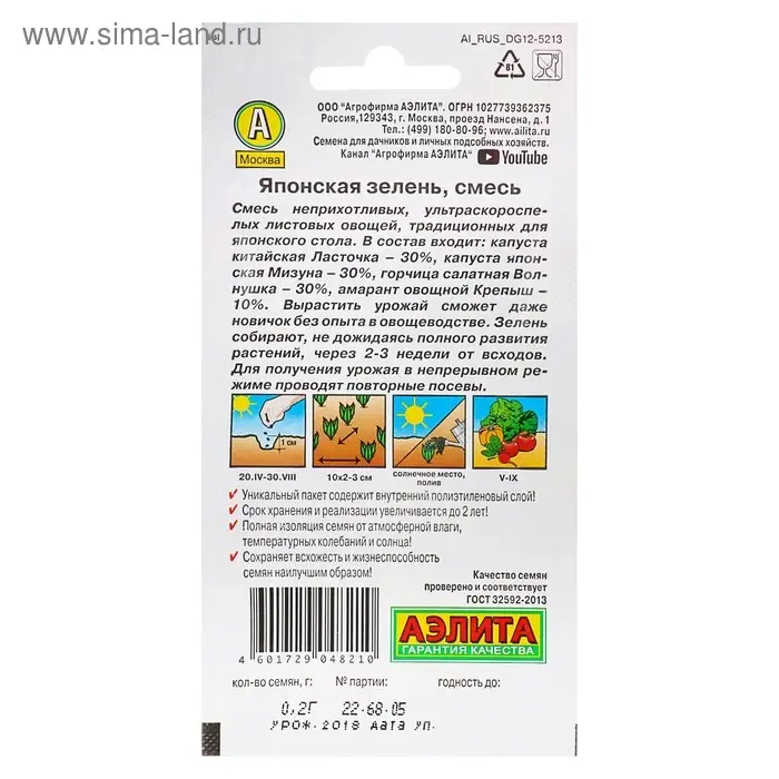 Семена Японская зелень, смесь, 0,2 г