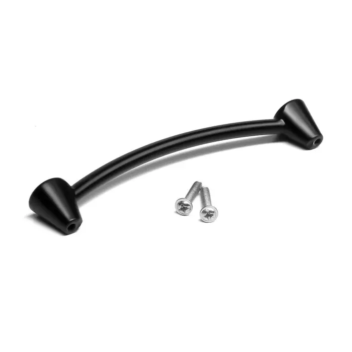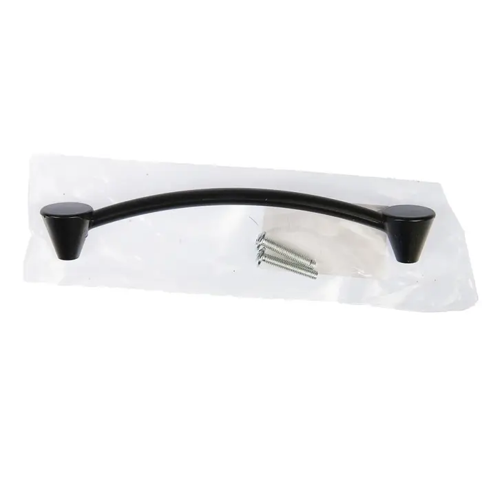 Интересный дизайн ручки сочетается с различными типами мебельного гарнитура. Фурнитура имеет привлекательный внешний вид и компактный размер. Черный оттенок идеально подходит к мебельным фасадам в различной цветовой гамме.