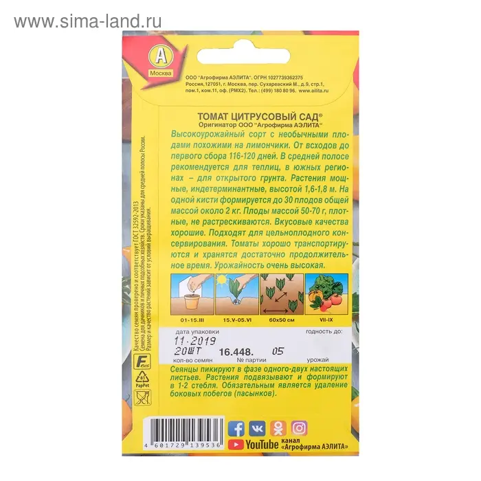 Семена Томат "Цыпочка", Сем. А,,набор 5 шт