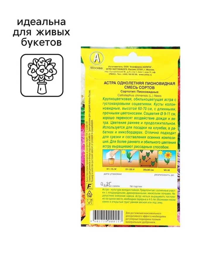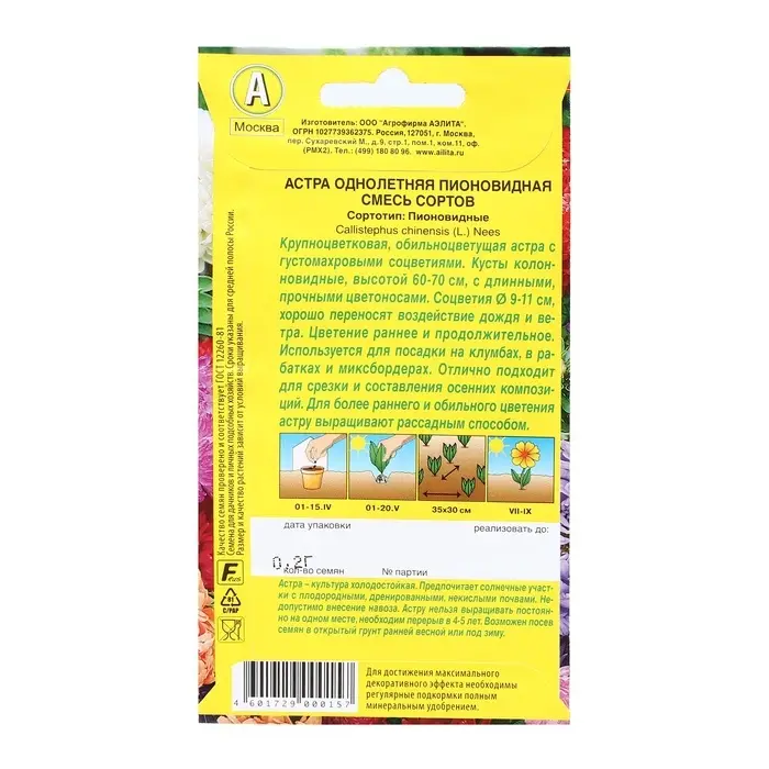Семена цветов Астра Пионовидная, смесь окрасок, О, 0,2 г