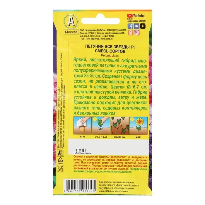 Семена цветов Петуния "Все звезды" F1 многоцветковая, смесь окрасок, О, 10 шт