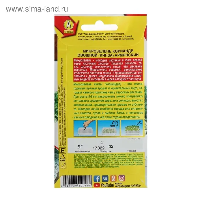 Семена Микрозелень Базилик "Ароматный салат", смесь, 5 г
