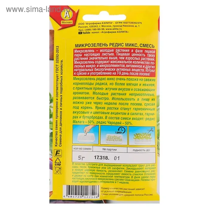 Семена Микрозелень Редис микс, 5 г