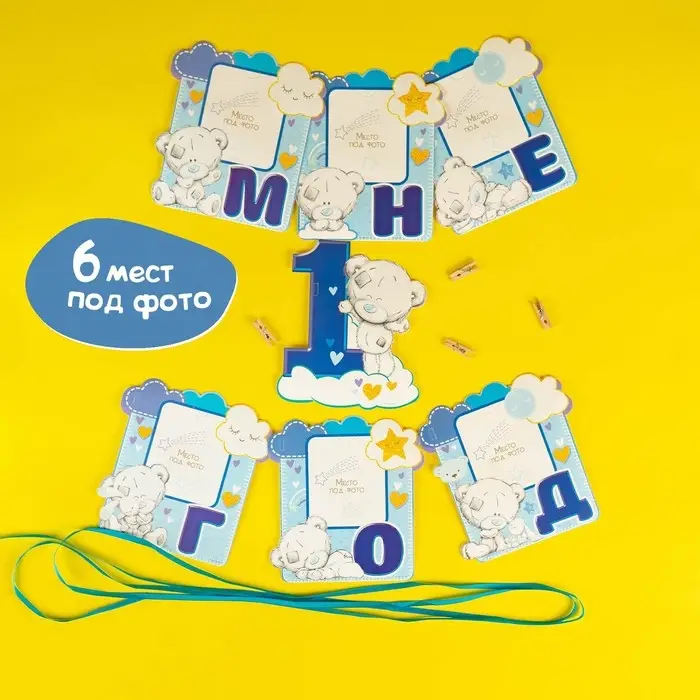 Гирлянда на ленте «Мне 1 год» с местом под фото, 15×16 см Me to You