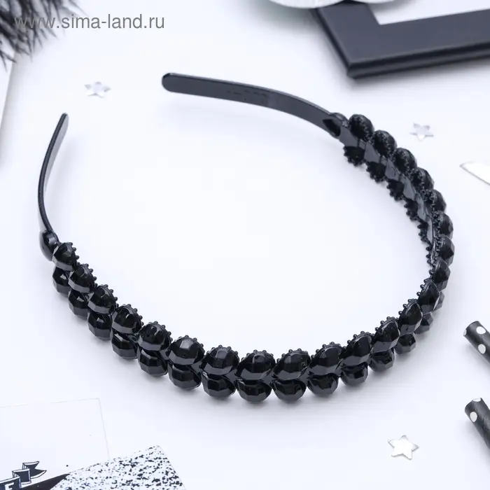 Ободок для волос «Ночка», капельки два ряда, 2 см, чёрный