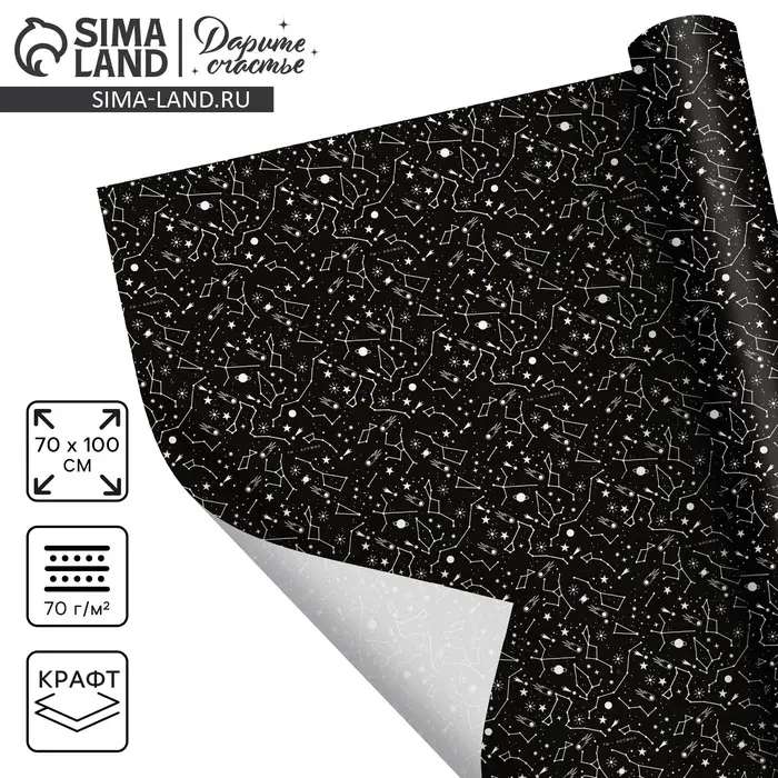 Бумага упаковочная крафтовая «Космос», 70 х 100 см