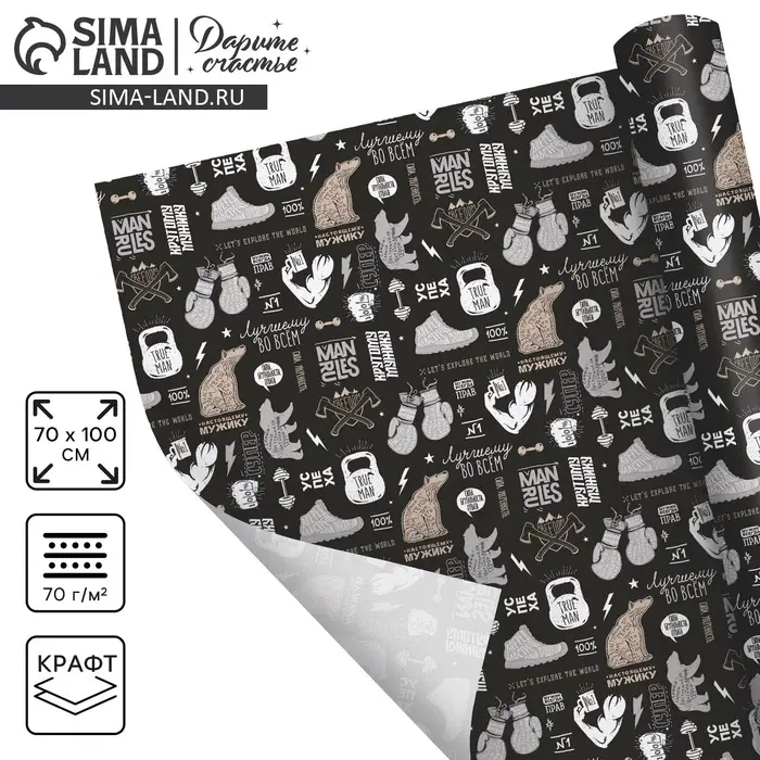 Бумага упаковочная крафтовая «Лучшему во всем», 70 х 100 см