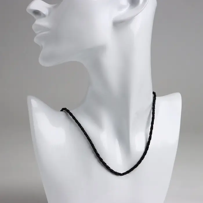 Шнурок кожаный d=3 мм, 45 см, чёрный, косичка