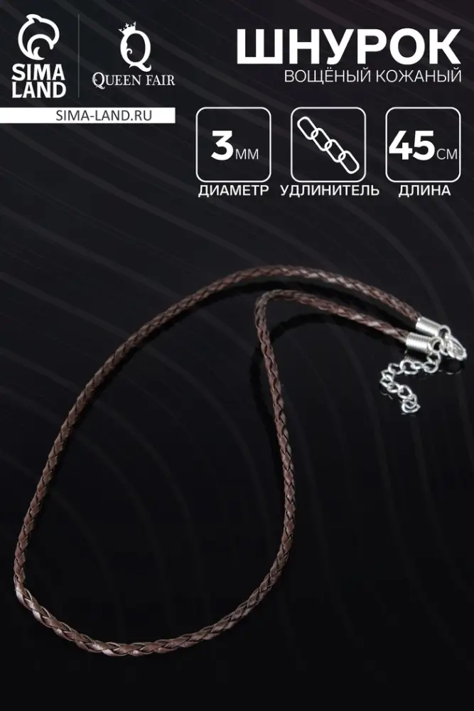 Шнурок вощёный кожаный диаметром 3 мм и длиной 45 см, цвет коричневый, с косичкой – это стильный и прочный материал для создания уникальных украшений и аксессуаров. Кожаный шнурок имеет прочную структуру и приятную текстуру, что делает его идеальным для плетения браслетов, ожерелий и подвесок. Вощеная обработка повышает его износостойкость, а косичка добавляет дополнительный стиль и объём.