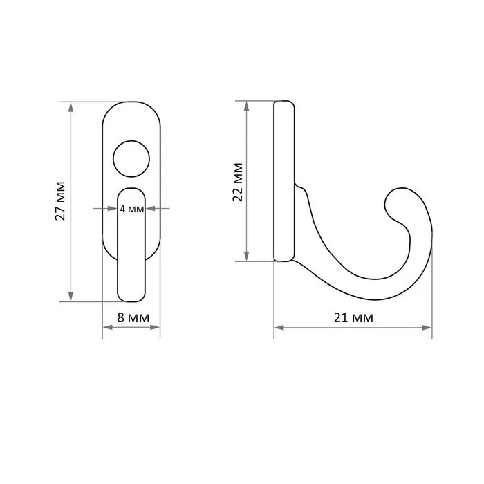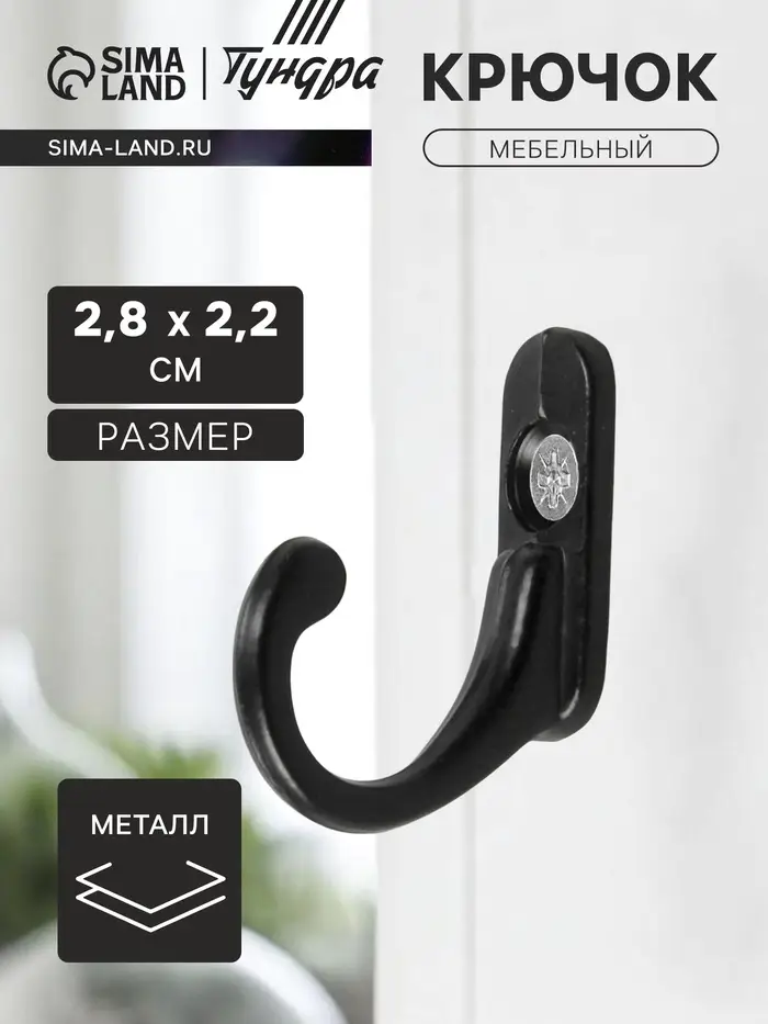 Крючок мебельный ТУНДРА TKO006, однорожковый, черный, 25 шт.