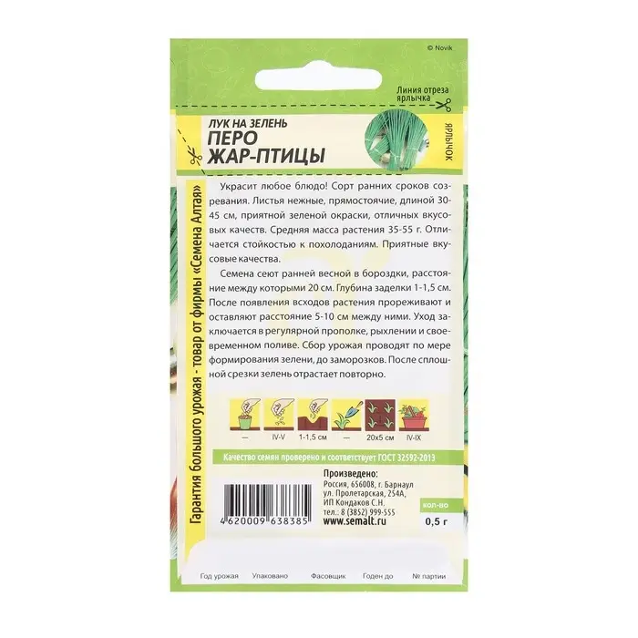 Семена Лук на зелень "Перо Жар Птицы", ц/п, ц/п, 0,5 г