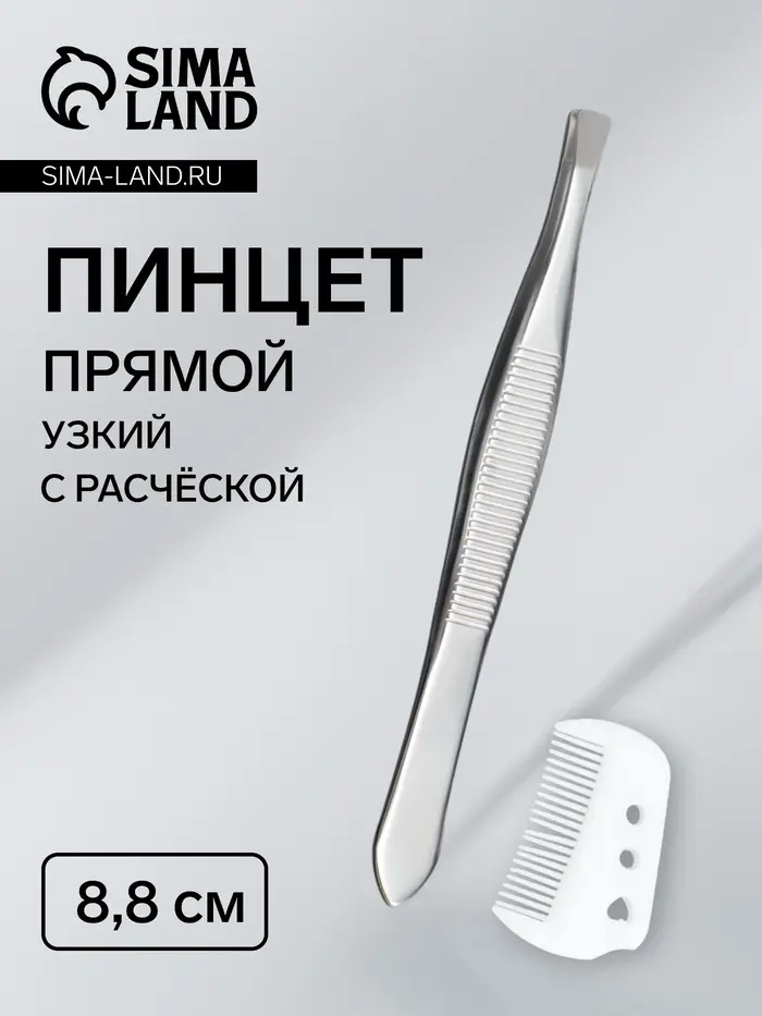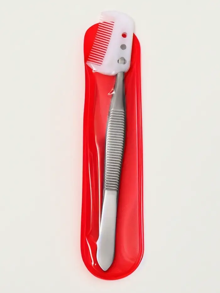 Пинцет прямой, узкий, с расчёской, 8.8 см, в чехле, МИКС