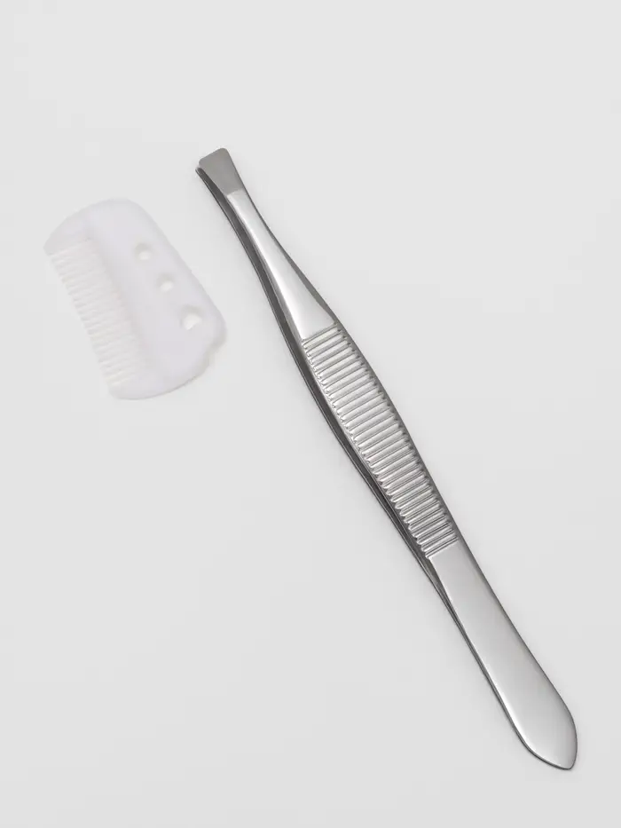 Создайте идеальные брови без лишних усилий с узким пинцетом с прямыми концами. Этот компактный инструмент, длиной 8,8 см, выполнен из металла и идёт в комплекте со съёмной пластиковой расчёской. С его помощью легко и точно удаляются лишние волоски, не обламывая их, а вырывая с корнем, что делает уход за бровями быстрым и эффективным.