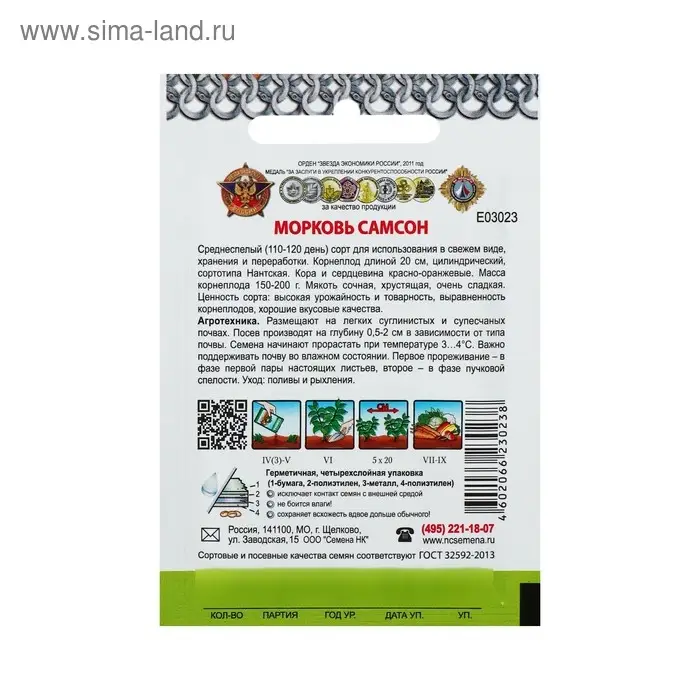Семена Морковь "Самсон" серия Кольчуга, 1 г