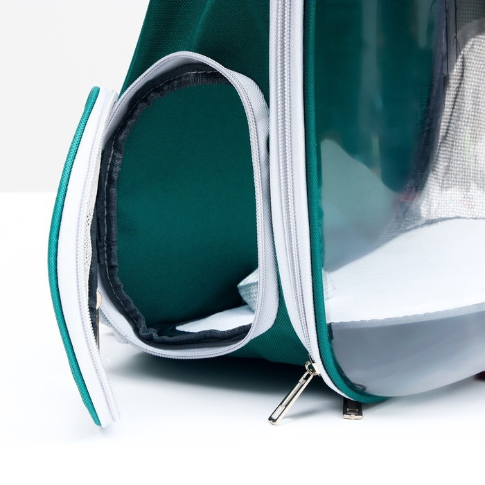 Рюкзак для переноски кошек и собак, прозрачный, 31 х 28 х 42 см, зелёный