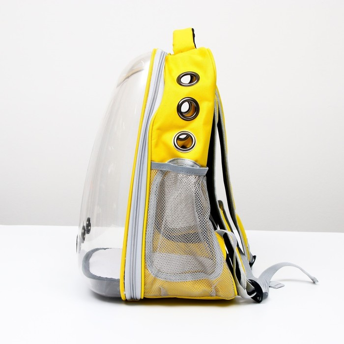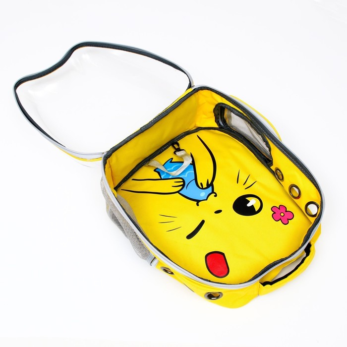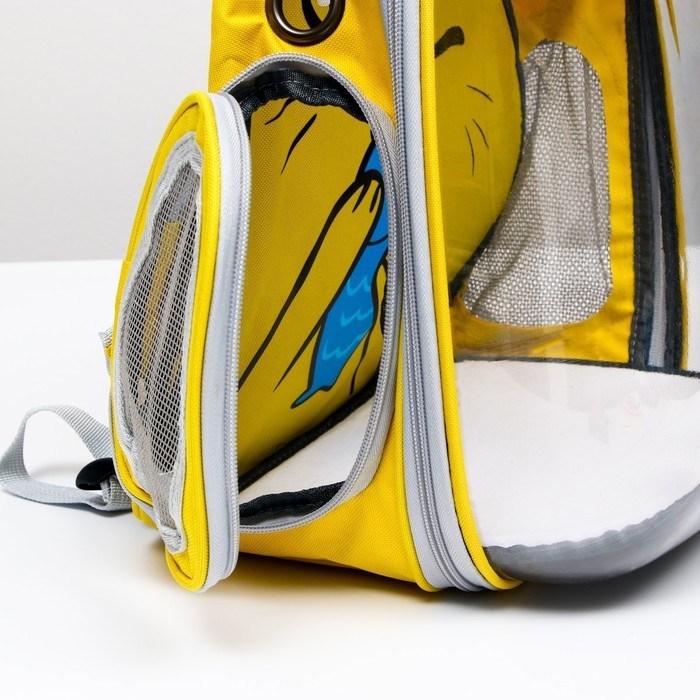 Рюкзак для переноски кошек"Котик", прозрачный, 34 х 25 х 40 см, жёлтый