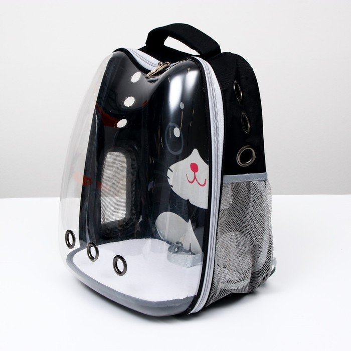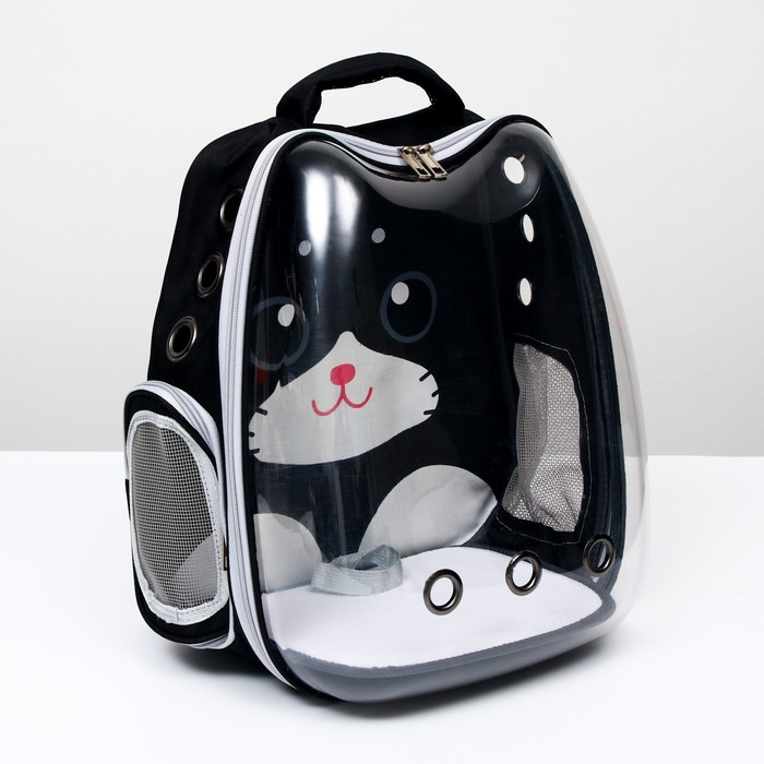 Рюкзак для переноски кошек, прозрачный, 34 х 25 х 40 см, чёрный