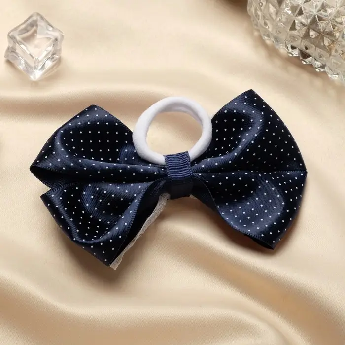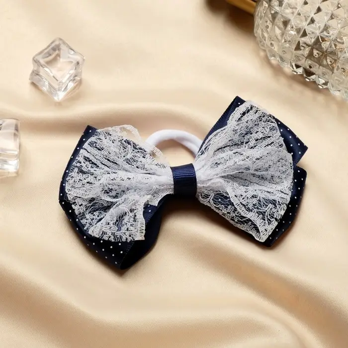 Резинка для волос «Школьница», синий с кружевами