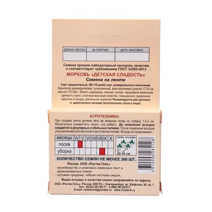 Семена Морковь "Детская сладость", Семена на ленте, 8 м,