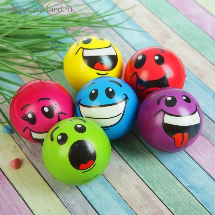 Мяч детский мягкий «Смайлики», 6.3 см, МИКС